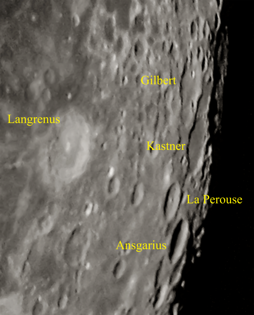 Gilbert es un viejo cráter de 107 km de diámetro con paredes muy desgastadas. Su posición, muy cerca del limbo oriental, lo hace difícil de apreciar con detalle. Sobre su pared suroriental hay un cratercillo de 25 km llamado Kastner A a pesar de estar en la pared de Gilbert. Por el noreste la muralla está parcialmente destruida por dos cráteres de unos 30 km que hacen parecer a Gilbert más pequeño. Un cratercillo de 17 km se encuentra en la parte norte de su interior. El nombre lo sugirió Whitaker en 1963 y fue aprobado por la Unión Astronómica Internacional.